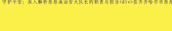 守护平安:深入解析昂昂溪治安大队长的职责与担当